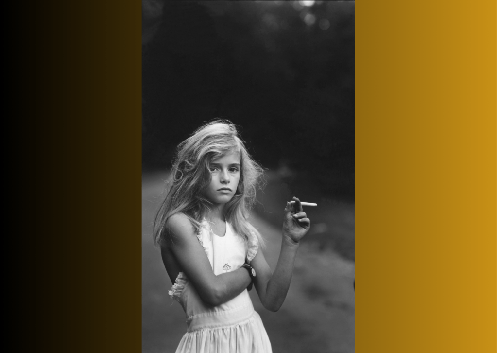 Sally Mann’s photograph “Candy Cigarette” from her “Immediate Family” series appears to serve as a thought-provoking exploration of the complex influences on childhood and the blurred boundaries between innocence and the imitation of adult behaviors. Through the juxtaposition of the young subject, Jessie, with the symbolic candy cigarette, the photograph invites viewers to reflect on the societal norms and cultural influences that shape the experiences and perceptions of children. Jessie’s contemplative expression and the natural outdoor setting further enhance the nostalgic and introspective mood of the image, prompting deeper contemplation on the emotional depth and maturity that can exist within the realm of childhood