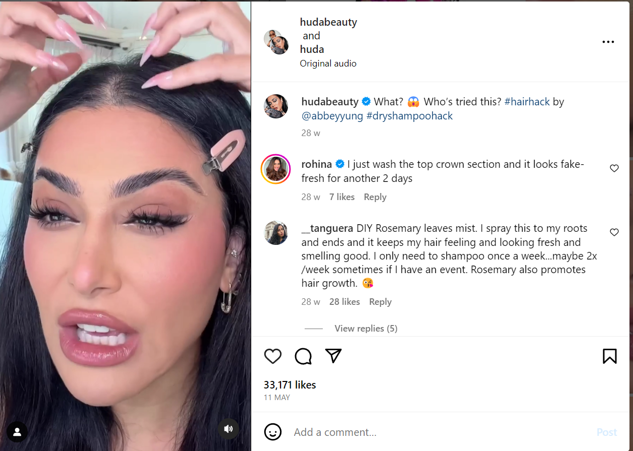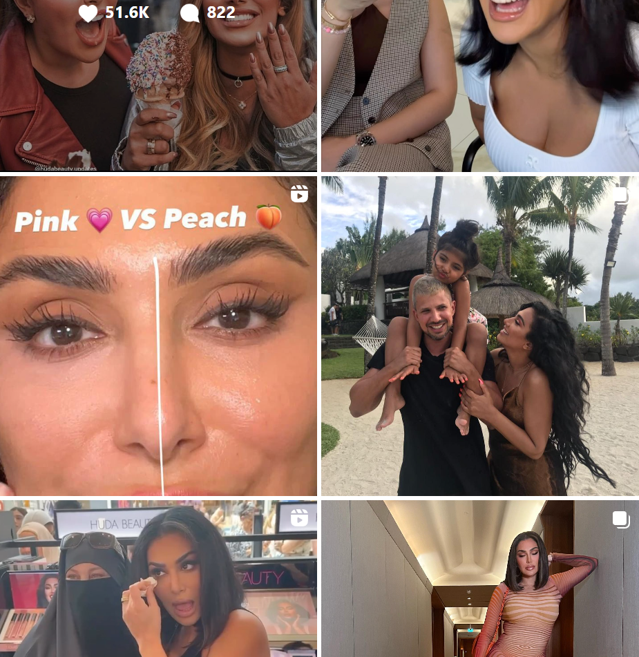 Huda Kattan and her brand have been my inspiration for many years. Today, she is one of the most followed beauty influencers in the world and I continue to draw inspiration from how she combines trends with common people to show relatability and accessibility to her brand and products.