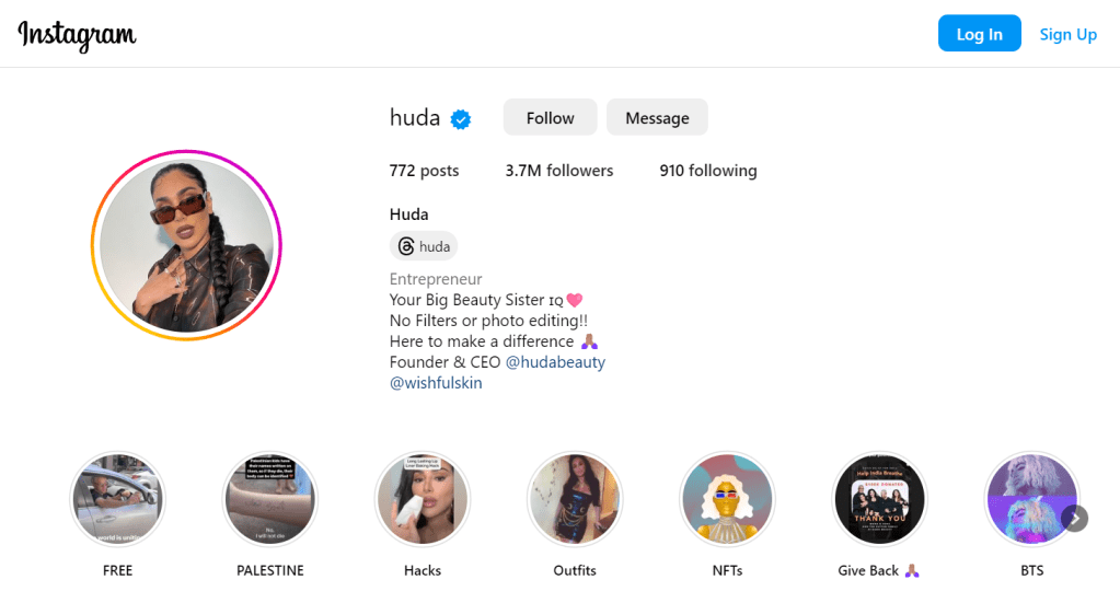 - (No date) Login • instagram. Available at: https://www.instagram.com/huda/ (Accessed: 24 November 2023).