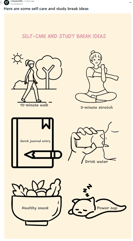 To effectively engage people on Reddit and Instagram, content creation needs a deliberate approach to inspiration, research, production, and editing. For Reddit, I conducted extensive research on prominent student-life subreddits, identifying prevalent issues and pain concerns within the community. Throughout the autoethnographic inquiry, discovered that articles with a real, story-driven approach resonated the most. created the material to be informal and advice-driven, reflecting the supportive attitude of the Reddit student community.