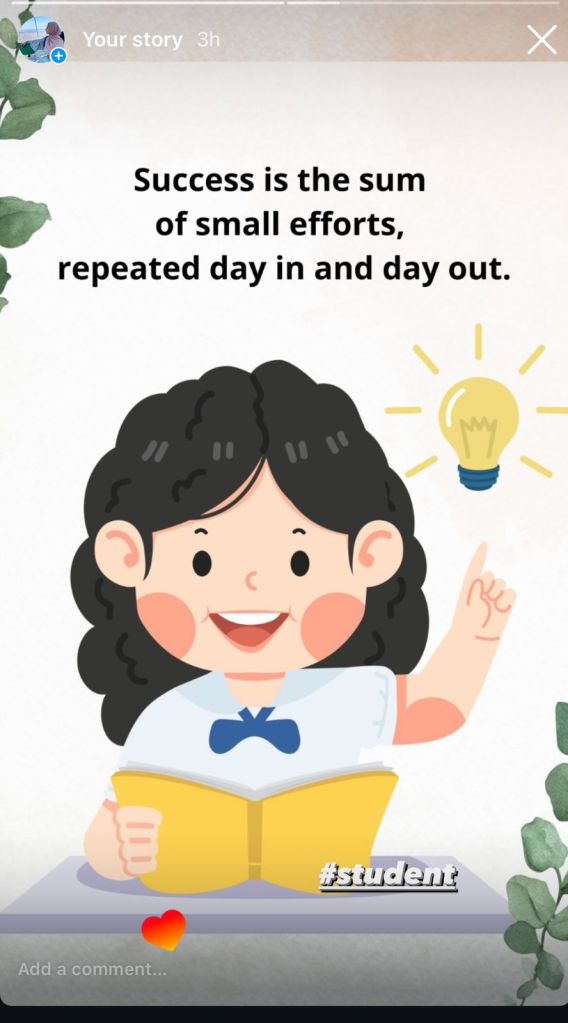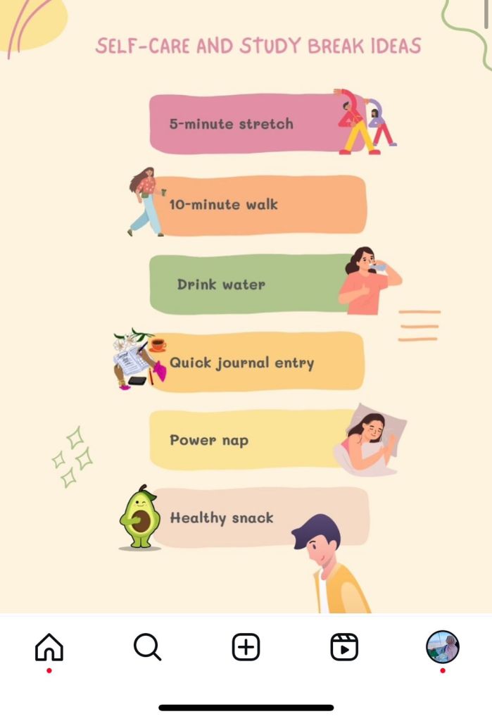Instagram, on the other hand, required a visually appealing approach, that included photographs and short video clips depicting student routines and times of leisure. Here, production entailed developing visually appealing pictures and simple descriptions that would rapidly attract viewers. The biggest problem was blending authenticity with the visual quality that Instagram values. I overcome this by establishing defined content topics for example “Study Hacks” or “Balancing Work and Study” and adhering to a consistent visual style, polishing my pictures using easy editing tools while maintaining authenticity.